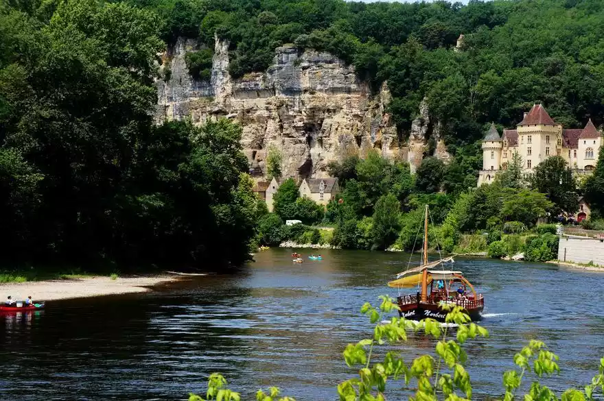 The Dordogne River flows gently and calmly, making it a great choice for boating or a river cruise. For a more casual boat trip, take a large, nostalgic sightseeing boat down the river at La Roque-Gageac, returning to the foot of Castelnau Castle in about an hour. Many people also rent kayaks at La Roque-Gageac and enjoy a leisurely paddle along the river.