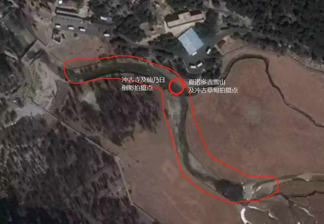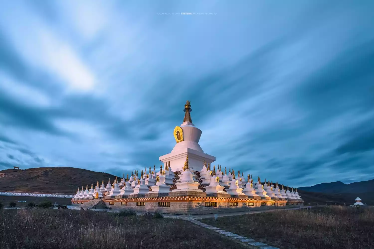 There is a rest area in Chonggu Temple. Next to the rest area, you can use a wide-angle lens to capture both Chonggu Temple and the sacred mountain Xianuoduoji.