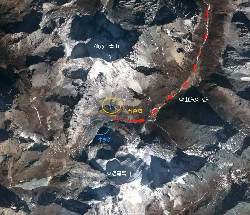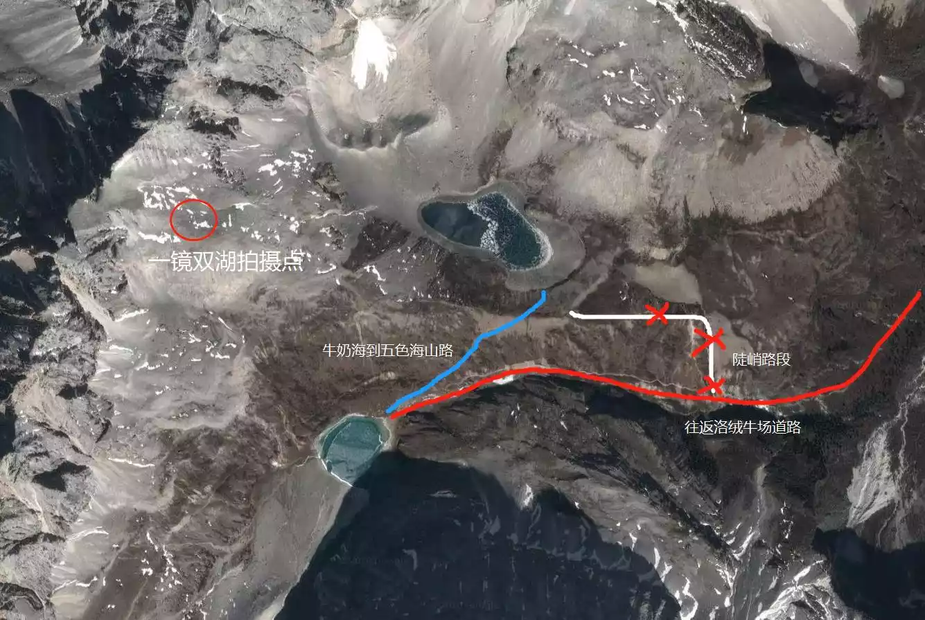 It is recommended to take the left road to Milk Lake first, then to Five-Color Lake, and then return the same way. Because the road on the right side of the intersection is extremely steep, coupled with an altitude of nearly 5,000 meters, it is very physically demanding and will hurt your knees.