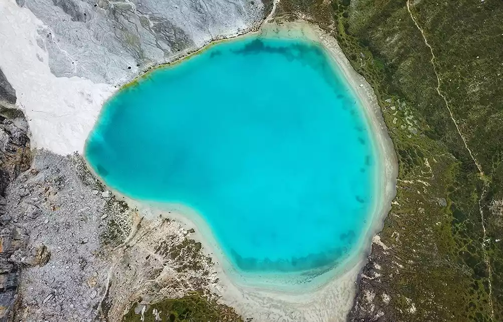 From Five-Colored Lake, continue up the gravel slope for 30-50 minutes. From the higher slopes, you can use a wide-angle lens to frame both the Five-Colored Lake and Milk Lake. This has become a popular Instagram-worthy spot in recent years. However, due to the high altitude, the ascent requires considerable stamina, so be sure to exercise within your capacity.
