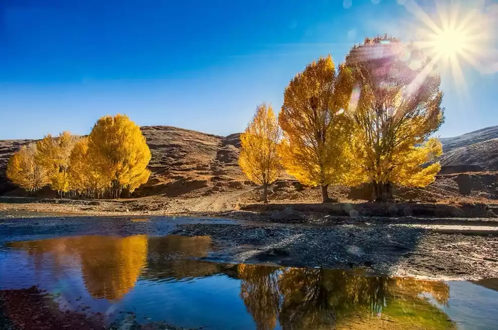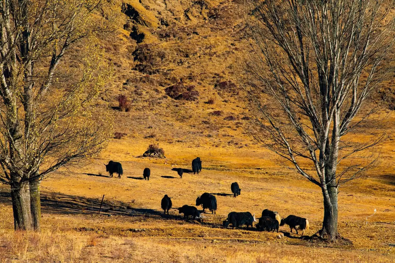 Located on the road from the county seat to Yading, it's within walking distance. In autumn, the area is covered in golden yellow. On moonless nights, away from the city lights and traffic, you can capture the beautiful Milky Way or practice light painting in the open spaces between the trees.