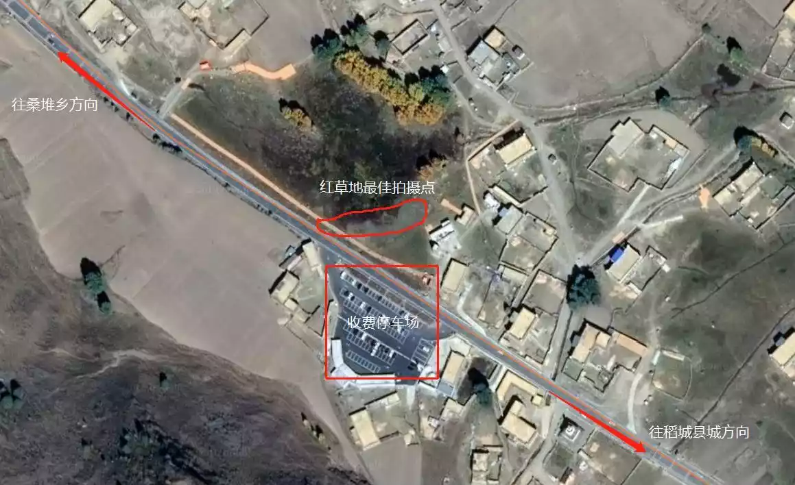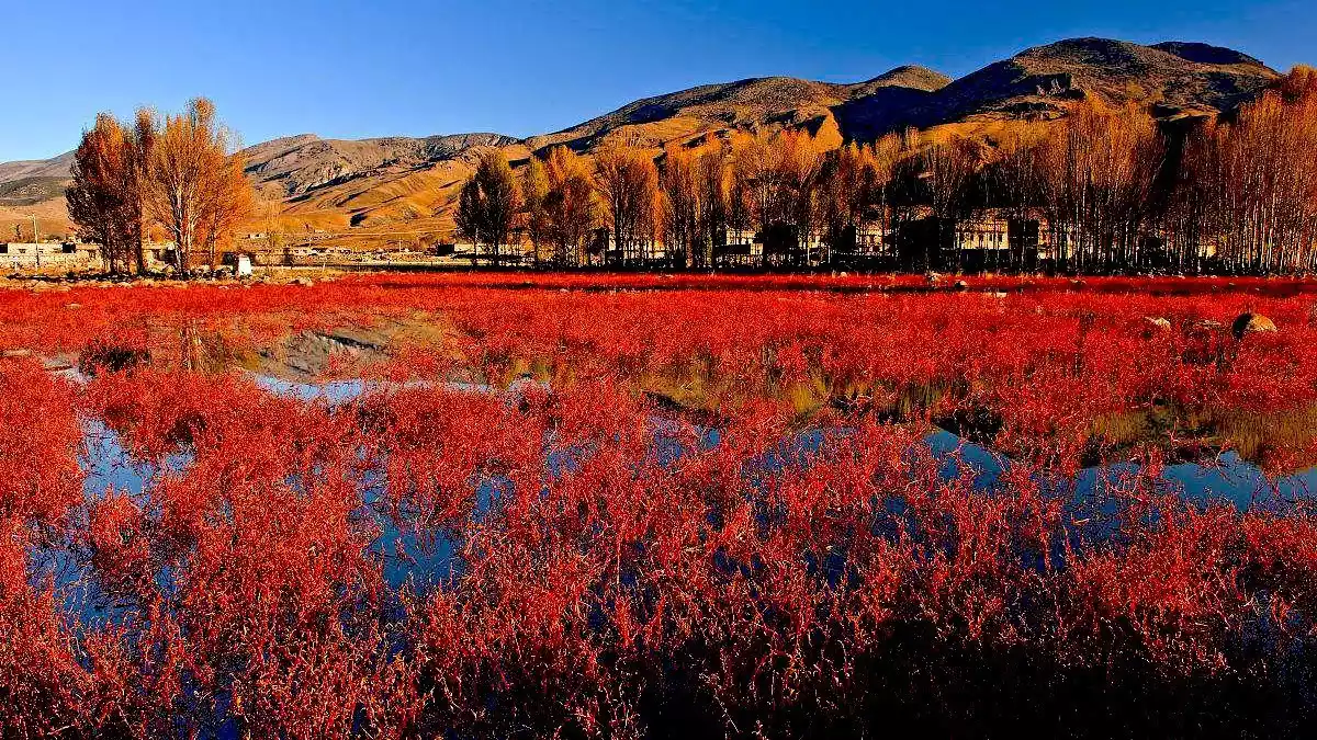 Located on the road between Sangdui Town and Daocheng County, it's quite small, but famous for the unique red aquatic plants that cover it about two weeks before and after National Day. The red grass is protected by a wall and is free to park, but the parking lot across the road does charge a fee.