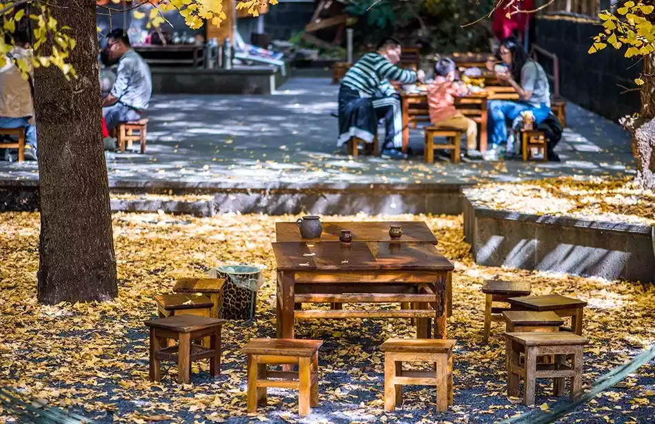This border town is like a paradise. Its proximity to Myanmar has made it a heartland of simple-minded overseas Chinese. The Yunnan-Burma Expeditionary Force also commemorated this place with a unique poetic legacy, a perfect blend of volcanic geothermal wonders and idyllic rural life. Its beauty is subtle, seemingly revealing only to those willing to slowly open it. In late autumn, Ginkgo Village is awash in golden yellow, its landscape and ginkgo trees complementing each other. Sitting beneath the trees, chatting, savoring ginkgo-stewed chicken, sipping tea, and enjoying home-cooked dishes, is a warm and cozy experience.