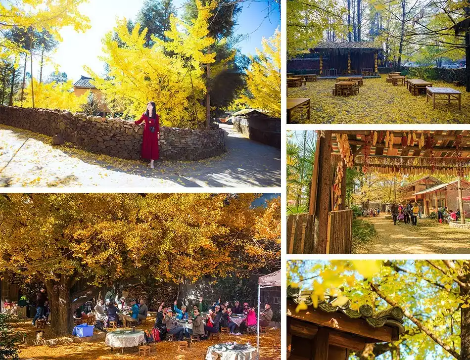 Gudong Town was once the economic, cultural, and commercial center of Tengbei. As early as the Yuan Dynasty, when military settlements were implemented, it engaged in trade with the Central Plains, earning it the reputation of "an important town in Tengbei." With its long history and rich culture, Gudong Town is a vital component of cross-cultural development, historically known as the "Ancient Prefecture of Shunjiang." Its shadow puppetry tradition has been passed down for over 600 years, and its Xingyang paper umbrellas and Jiangdong embroidery are nationally renowned. During the golden autumn season (mid-November to early December), the town's ancient ginkgo trees shimmer in golden light, adding a touch of quaintness to the ancient buildings. The colorful embroidery displayed in every household, set against the golden leaves, creates the unique scenery of the "Xinglin Embroidery Workshop." The film "Wuxia," starring Donnie Yen, was filmed here. Unlike most scenic forests located far from residents, the charm of Ginkgo Village lies in its "village within the forest, trees within the home." 827 households have lived in harmony with over 3,000 ancient ginkgo trees for generations.
