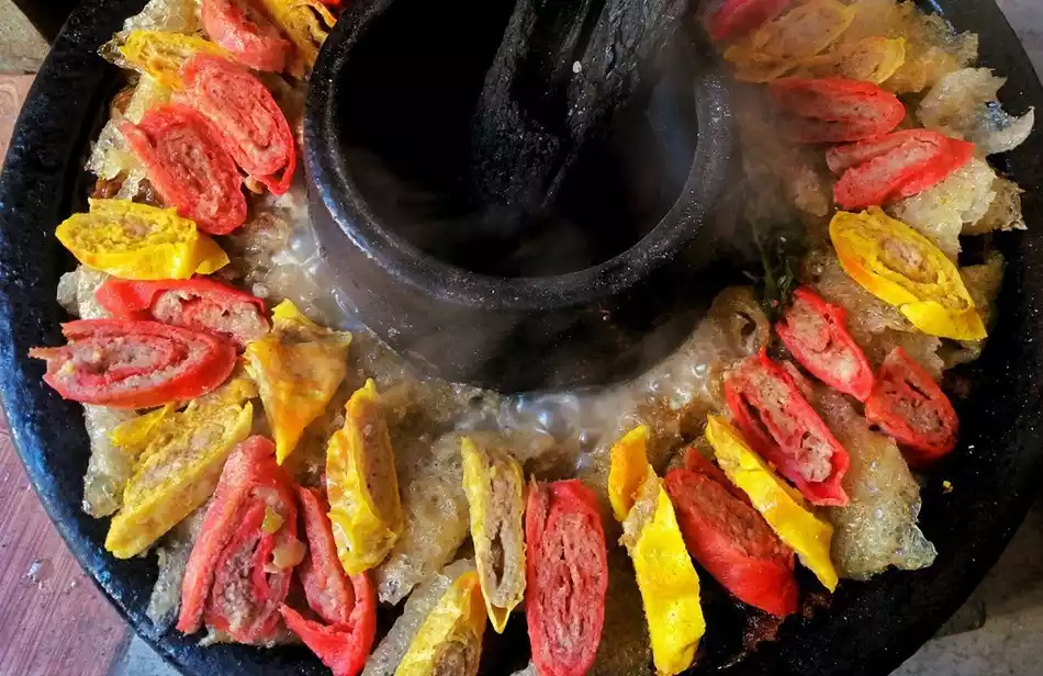 Tuguozi (earthen pot) is a very important type of Tengchong cuisine, with a unique cooking method. In addition to being served in local people's homes, you can also enjoy authentic Tuguozi in Tengchong hotels and restaurants, but it requires about 10 people to dine together to finish it.
