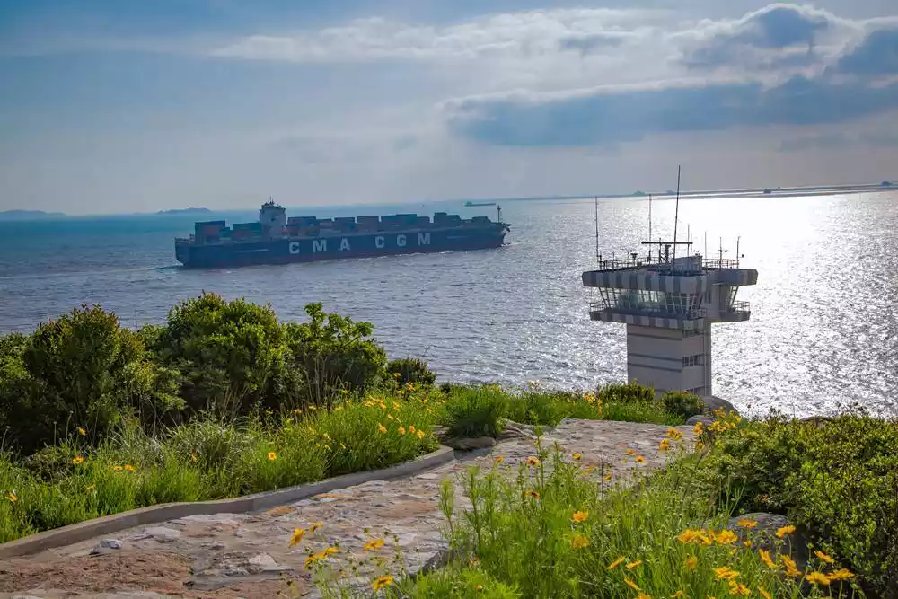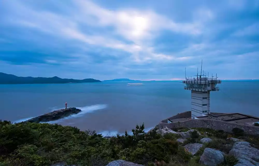 The International Waterway Observation Deck is located at the easternmost point, overlooking Taohua Island across Xiazhi Gate. Like the Tiaozhumen Channel, the water is deep, waves are low, and it's unsilted and unfrozen. Locals call it Beilun Port, and it's the only way to get to Ningbo-Zhoushan Port. On average, a 10,000-ton ship can be seen passing here every eight minutes. It's also a perfect spot for watching the sunrise over the mountains and the sea, and the magnificent ships sailing across the azure ocean.
