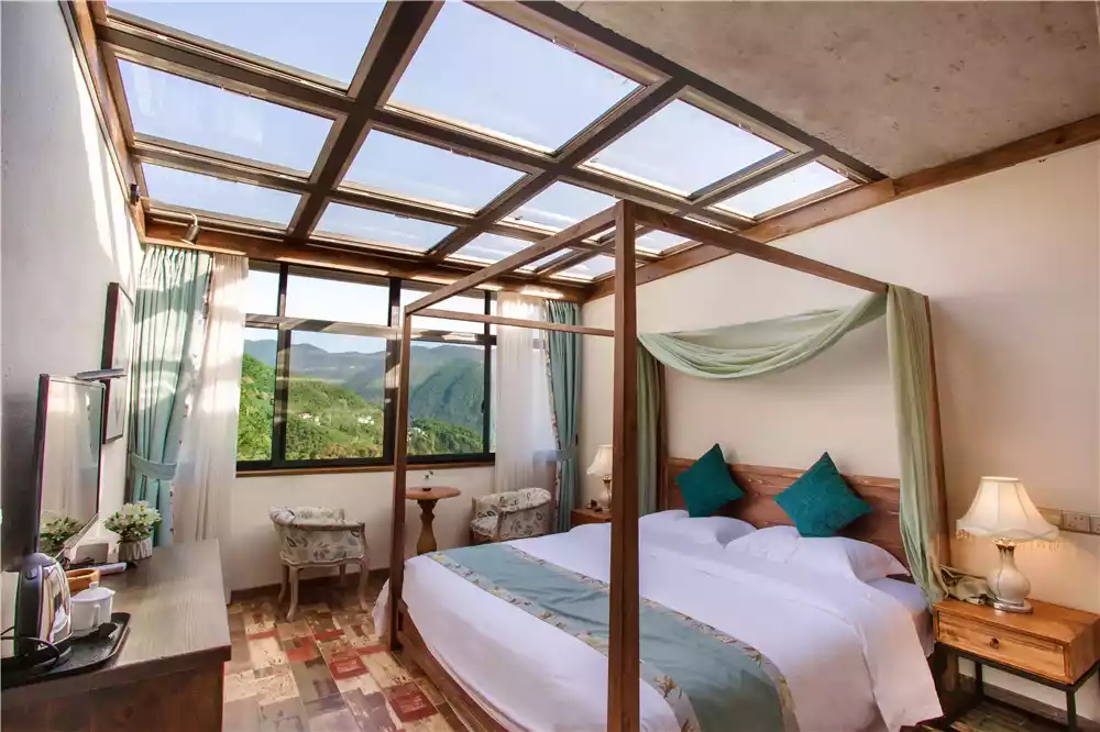 Sitting in the lobby, decorated with European-style fabrics and leather furniture, with the afternoon sun shining on the wooden floor, a cup of coffee or tea can make the hot days mild and soothing. On sunny days, you can also enjoy the spacious Dahuangping or the starry sky room, which is a unique feature of the B&B.