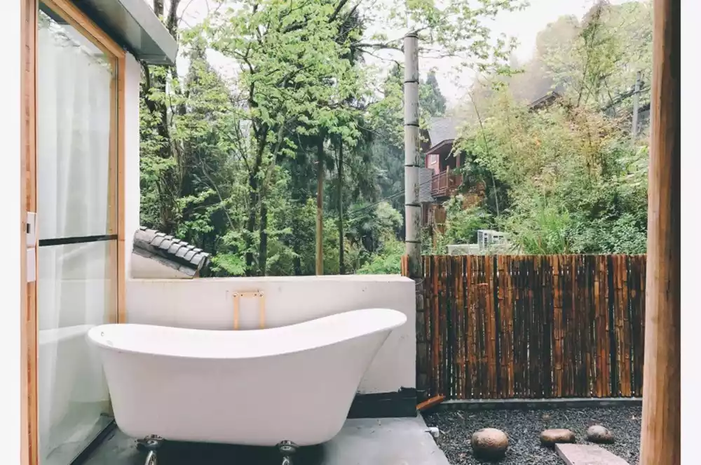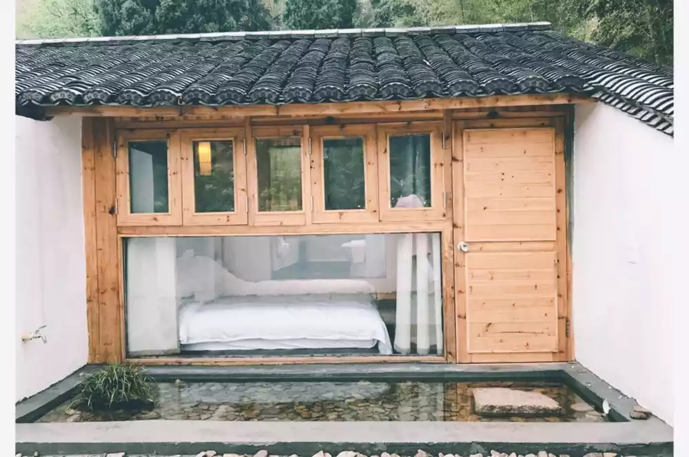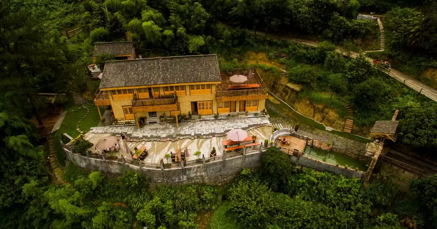Deep within the Yandang Mountains, this guesthouse offers a tranquil retreat, akin to a paradise. A secluded path leads to an ancient temple nestled in the forest, crisscrossed by bluestone pathways. Walking along the green path, accompanied by the melody of morning bells and evening drums, one encounters a mountain retreat, slowing the passage of time. The courtyard is filled with lush greenery, and the owner has even created a pond with a stream flowing through it, creating an elegant seating area where one can relax, enjoy tea, and converse, the worldly distractions dissipating in the mountains, leaving only a sense of detachment and tranquility.