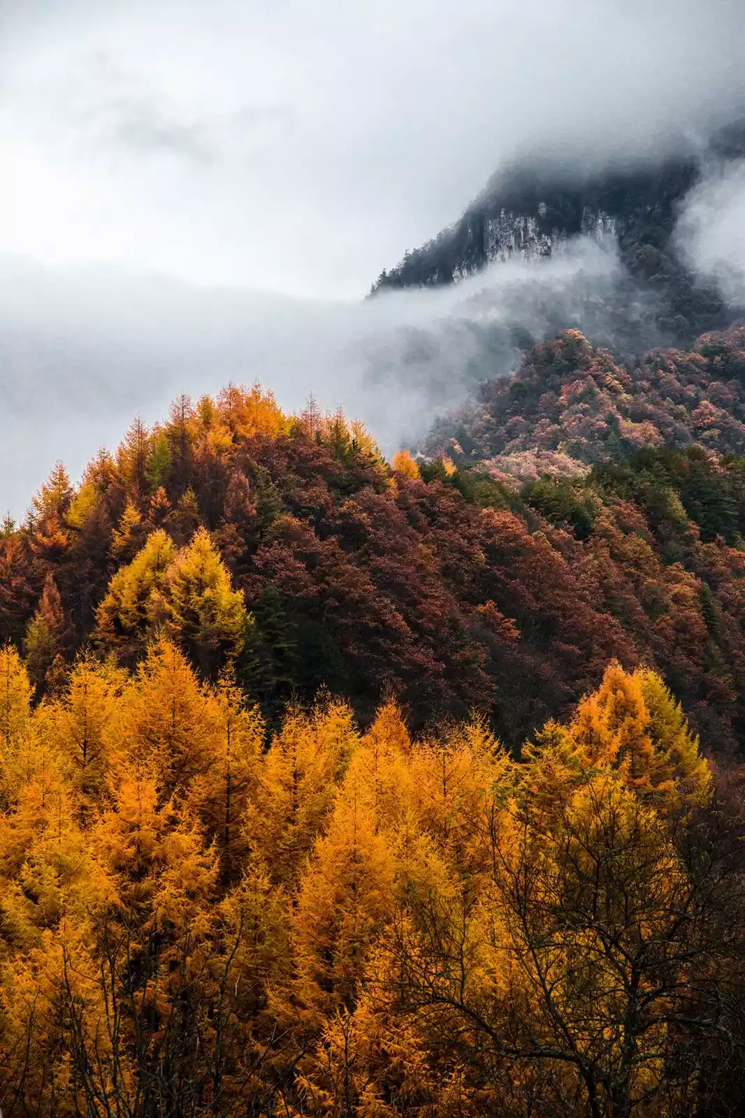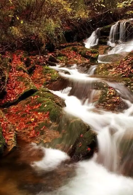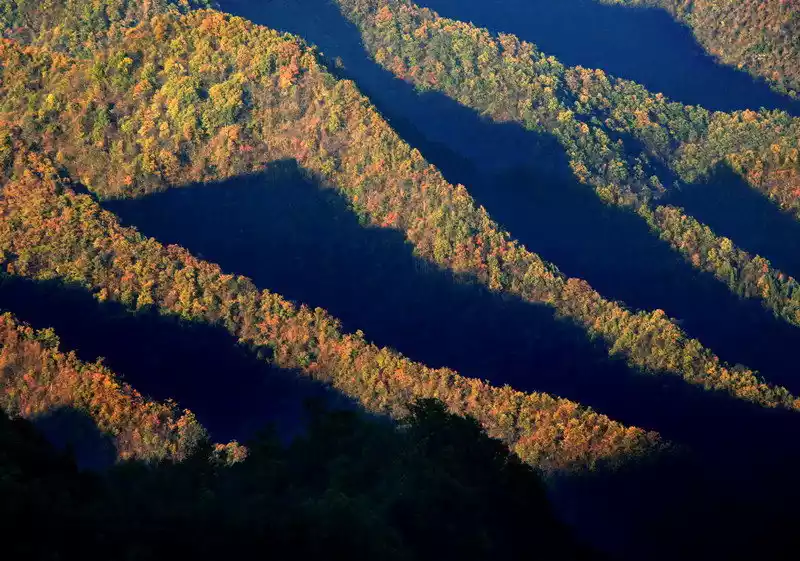 From late October to November, Shennongjia's stunning autumn scenery begins. The rolling hills resemble a painting board, and the trees spread across the mountains are like a paint box accidentally overturned by heaven.
