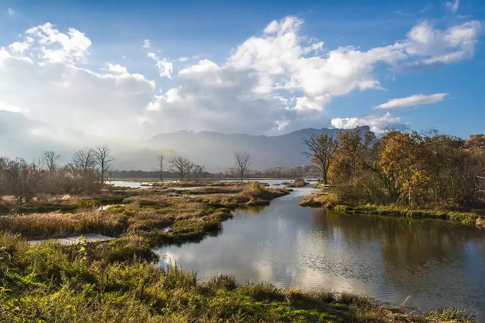 Dajiu Lake is a plateau wetland lake, a rare flat expanse in Shennongjia known as Jiuhuping. It is also the largest alpine wetland in Central China. It boasts nine interconnected lakes of varying sizes. A full tour takes approximately three hours on foot, or two hours by car. This is the only place in Shennongjia where you can see a lake. If you tire of the majestic mountains, the sudden sight of these gentle waters is a refreshing relief. In autumn, Dajiu Lake resembles a girl draped in a veil of vibrant colors, a truly stunning sight.