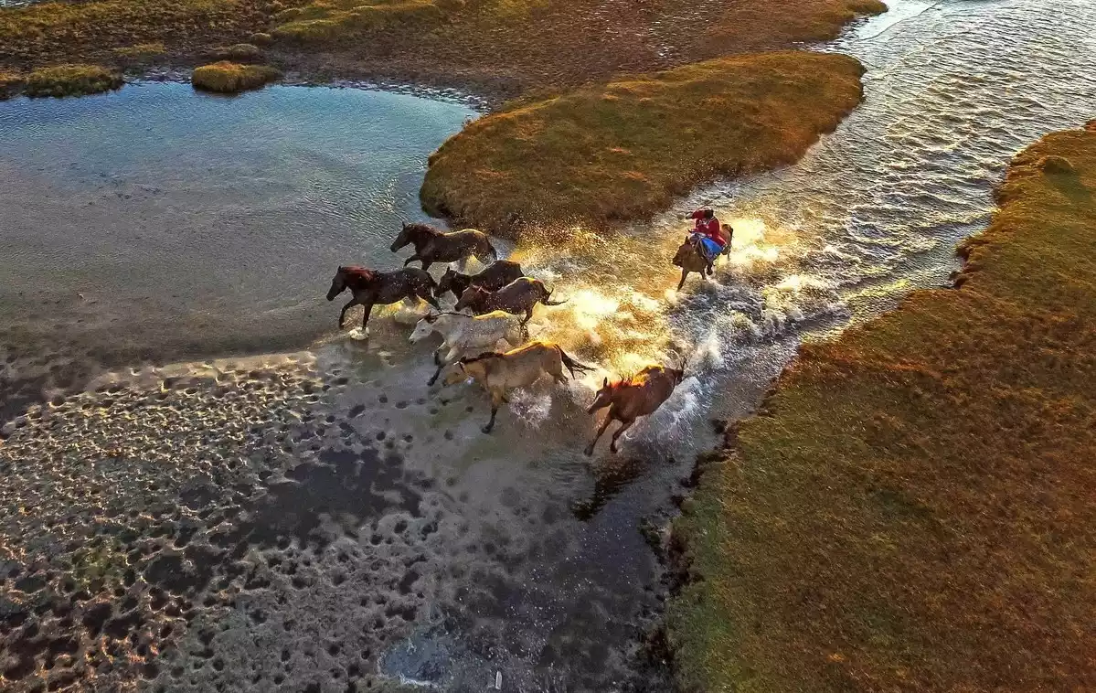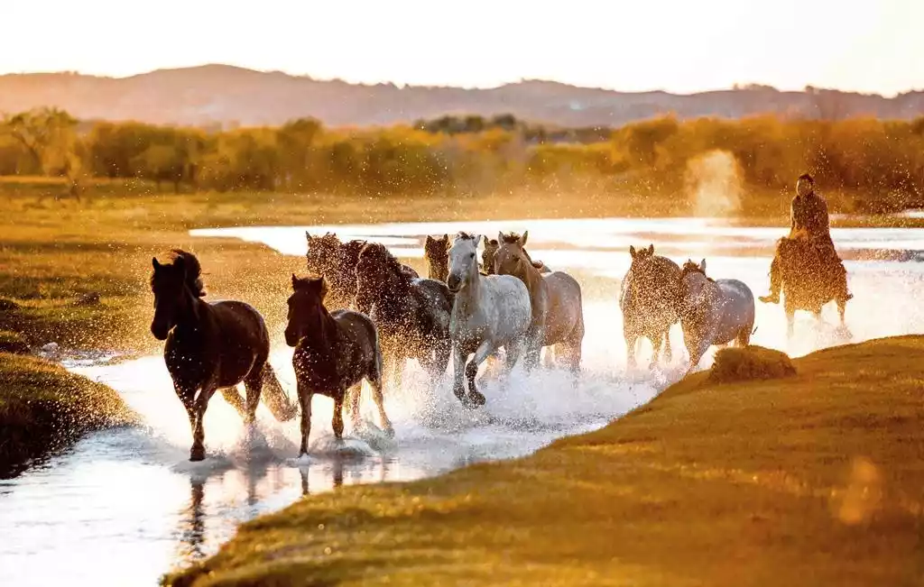 You can take pictures of horses stepping on water at Jiangjun Paozi