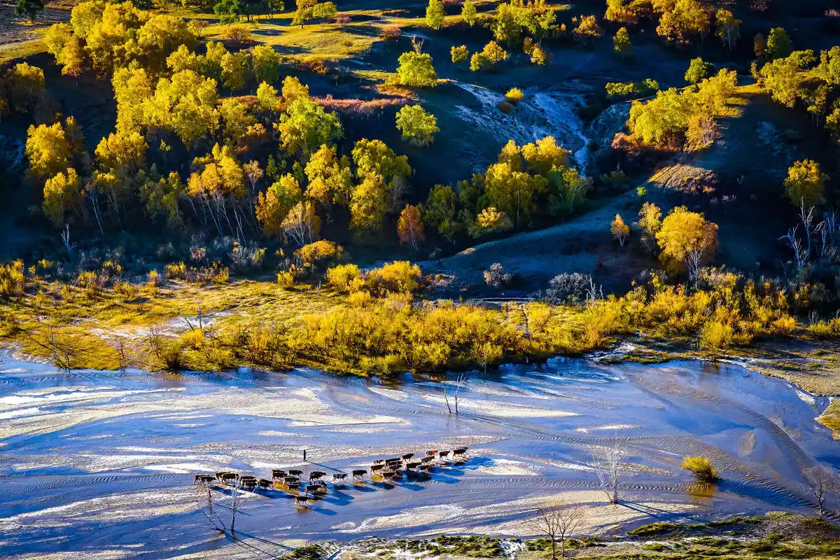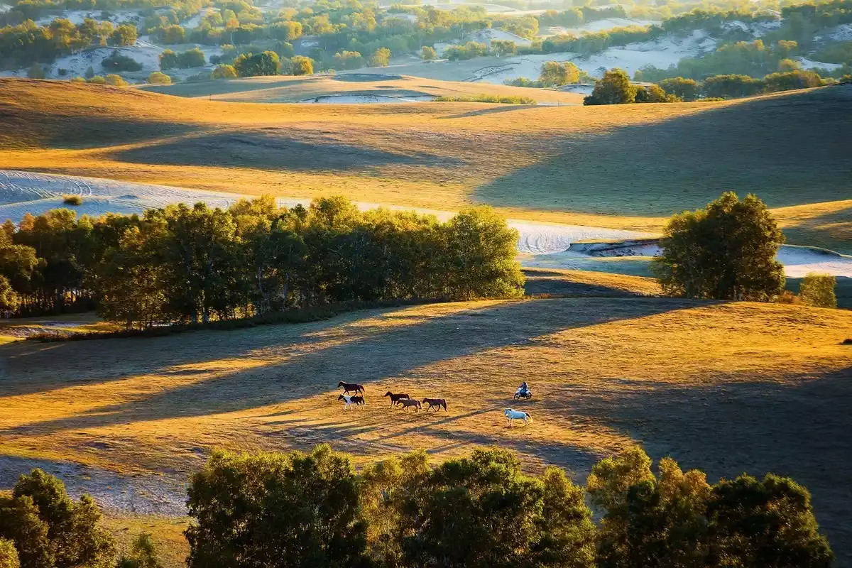 Beigou stretches across the prairie military horse farm from north to south. It is a long ditch running from south to north, so it is called Beigou. It stretches for more than ten miles and has rich terrain. The hillsides are covered with birch trees. In addition, there is blue sky, white clouds, cattle and sheep. No matter it is direct light or backlight, sunrise or sunset, the output rate of photos is extremely high. It is a must-visit place for photographers.
