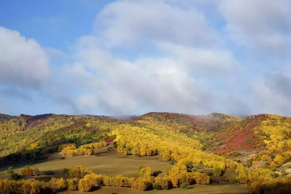 Hamaba, located in the Huamugou Forest District of Keshiketeng Banner, is over 20 kilometers from the Hongshan Military Horse Farm. It is a gently sloping area bordered on three sides by gullies or lowlands. The hilly terrain here is unique, and the autumn scenery is vibrant. Autumn leaves blanket the mountains, a vibrant golden glow. Among the clusters of crimson leaves, bright yellow birch leaves blend seamlessly into the landscape, creating a seamless and natural scene. For photographers, this is a treasure trove of photography, a place where you never tire of capturing new moments.