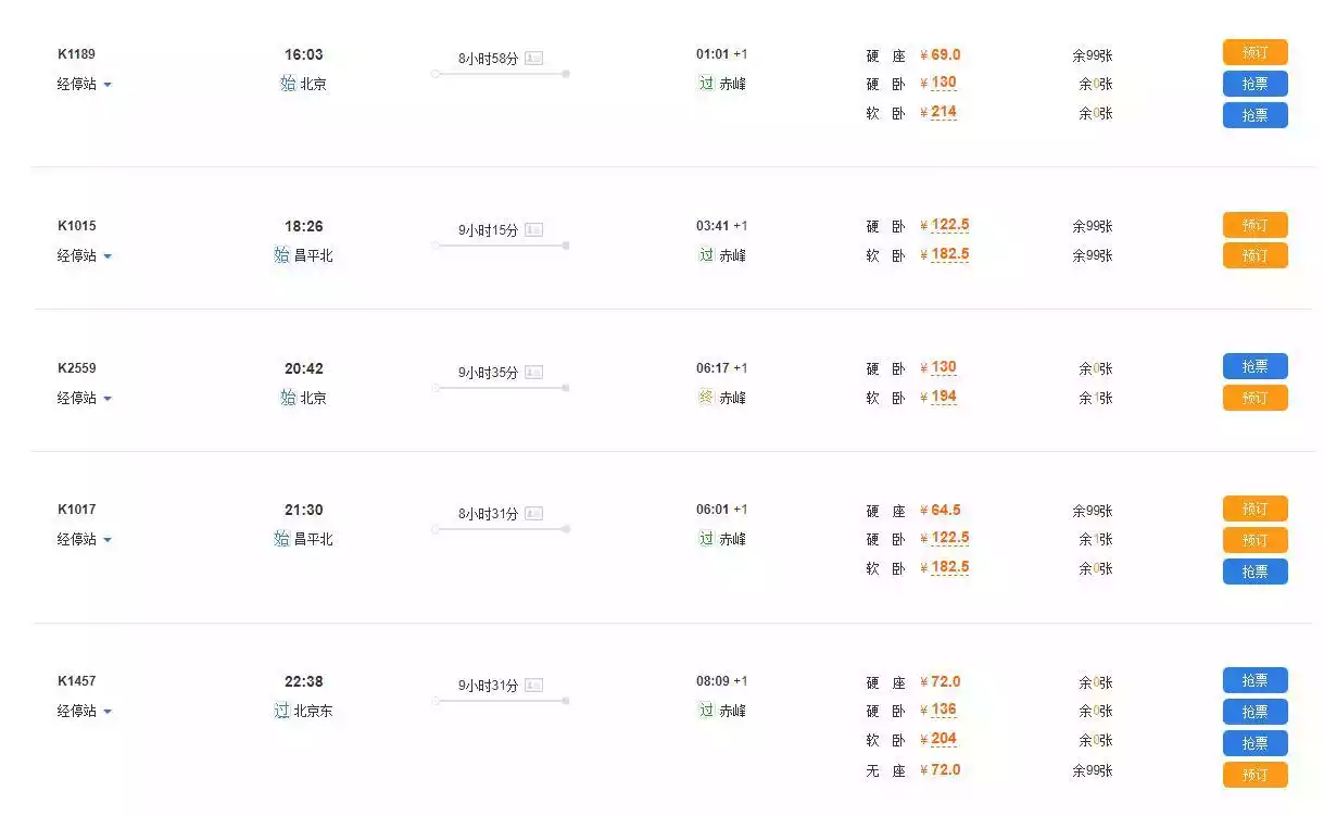 1. Take a train from Beijing to Chifeng