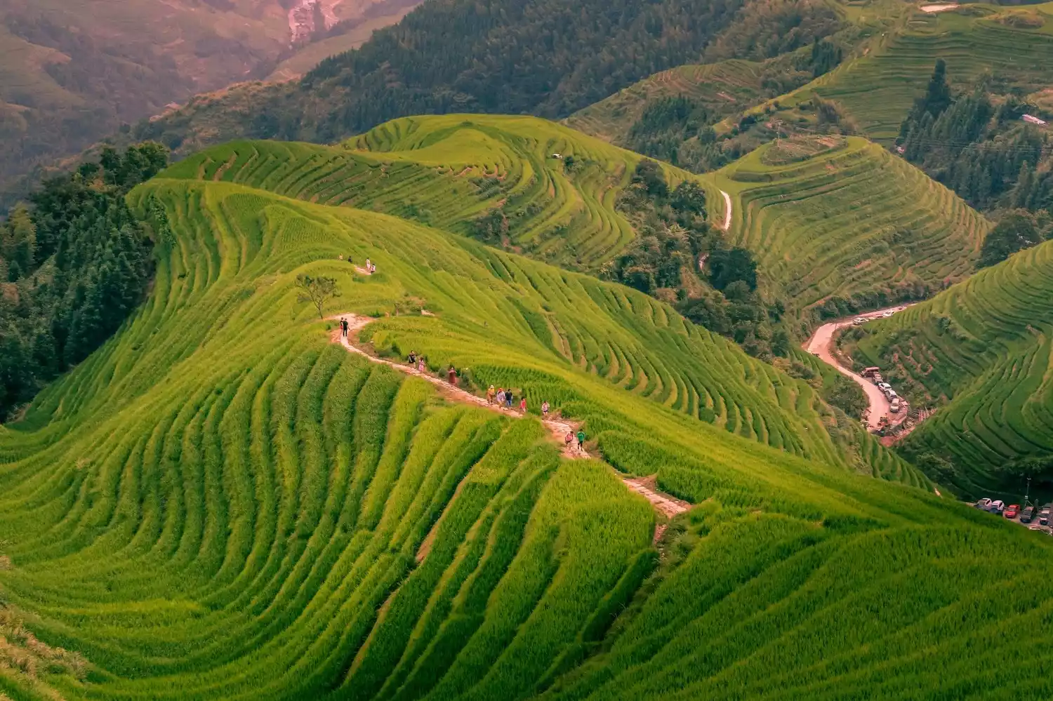Known as the "Crown of the World's Terraces," the Longji Rice Terraces are a World Cultural Heritage site, dating back over 650 years. They cover a total area of 66 square kilometers, located between 300 and 1,100 meters above sea level. The slopes range from 26 to 35 degrees, with a maximum gradient of 50 degrees. The Longji Rice Terraces encompass several villages, with the Longji Rice Terraces being the collective name for the scenic area. The most iconic examples are the Ping'an Zhuangzhai Rice Terraces (divided into two hilltops: Longji Ancient Zhuangzhai and Ping'an Village) and the Jinkeng Red Yao Rice Terraces. Huangluo Yao Village (featuring long-hair performances) and Jinzhu Zhuang Village are also popular. During the irrigation season from April to May and the autumn harvest season from September to November, visitors can experience even more unique scenery hidden deep within the mountains.