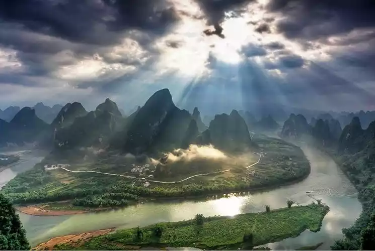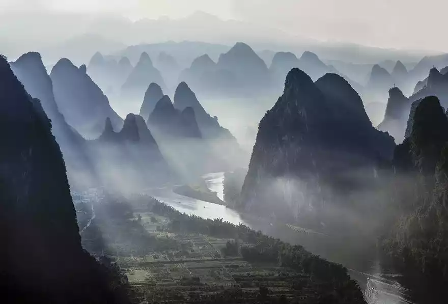 The afterglow of sunset casts a shadow over the majestic, dark green mountains. Bamboo rafts ply the waters, their hazy peaks reflected in the mist, creating a scene reminiscent of a delicate, ink-and-wash landscape painting. You can't fully appreciate Guilin without hiking a mountain, and these off-the-beaten-path hikes are perfect for those of you who prefer to avoid crowds.