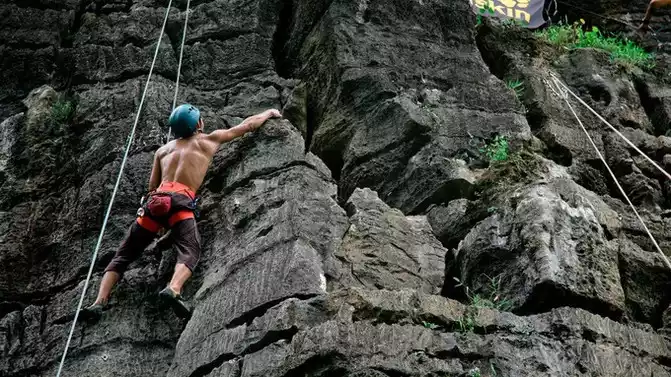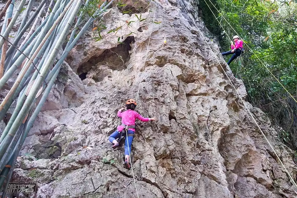 Currently, there are over 70 or 80 rock climbing organizations in Yangshuo. The main climbing locations are Swiss Cheese Mountain and Wine Bottle Mountain, both near the Butterfly Spring in the Ten-Li Gallery. There's also a climbing site in Xinglong Village. All are suitable for beginners, so you'll likely see many children climbing. These climbing programs offer manageable difficulty and a strong sense of experience, making them a must-do for any Yangshuo visit!