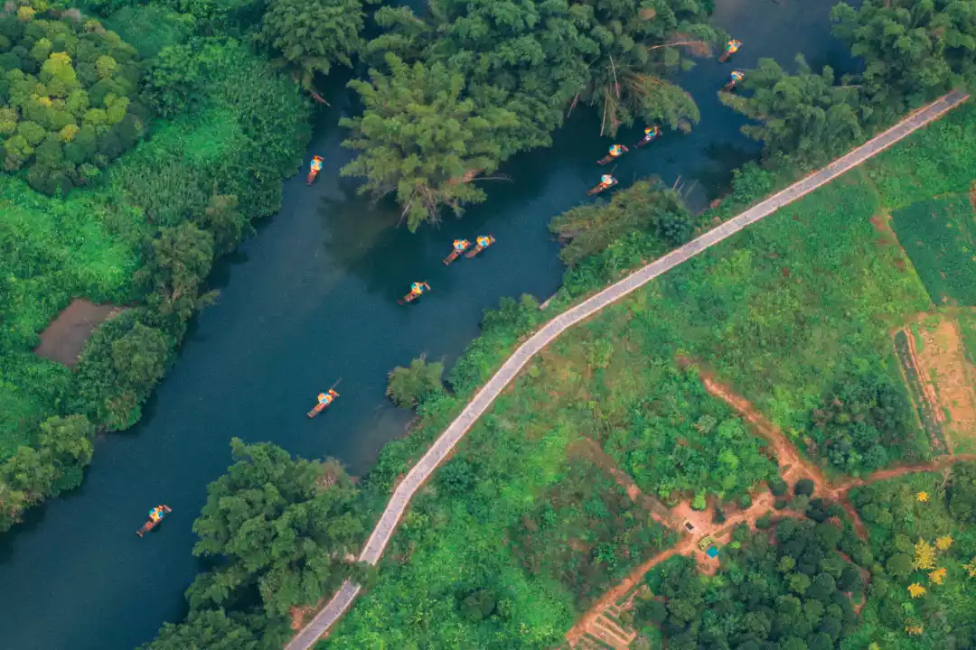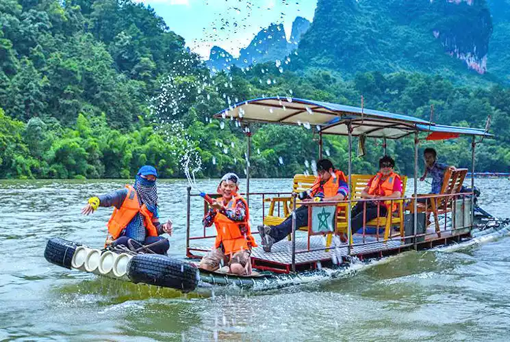 Compared with luxury cruise ships, bamboo rafts capture the most essential part of them. Sitting on a bamboo raft is like traveling in a painting. Listening to the raftsmen telling stories and feeling the leisurely breeze on your face is also a rare experience.
