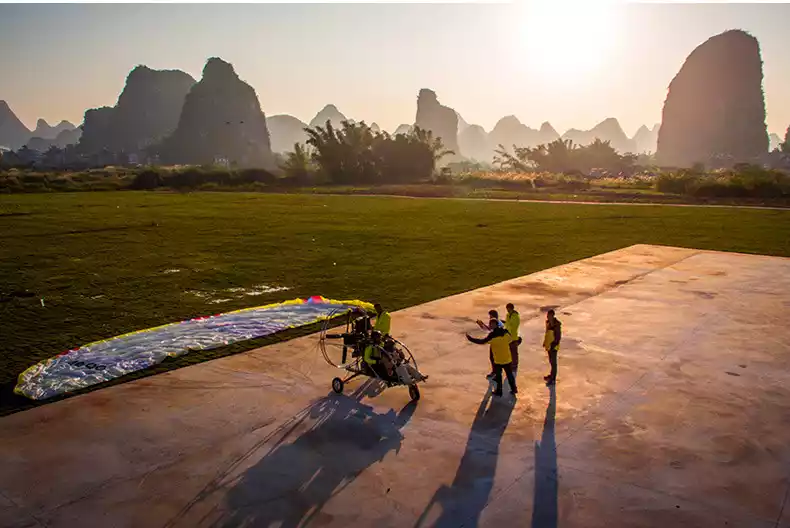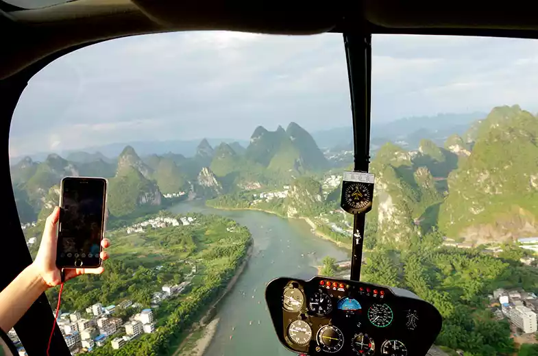 In 2013, China opened its low-altitude airspace below 3,000 meters, and Guangxi was among the second pilot provinces. This opportunity allows visitors to appreciate Guilin's landscape from a different perspective. A panoramic perspective offers a brand new experience, allowing visitors to overlook the graceful beauty of the Ten-Mile Gallery and the Yulong and Li Rivers from a distance.