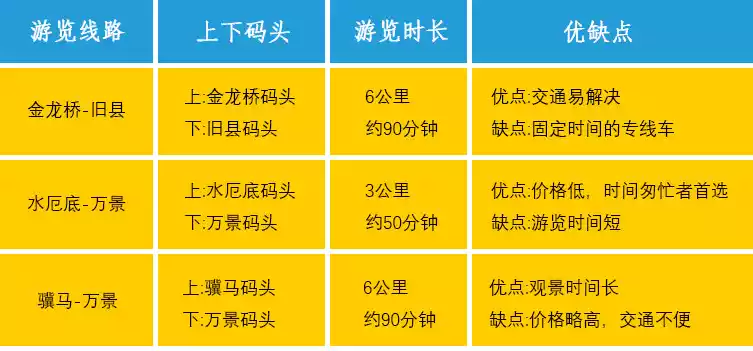 Experience duration: Ten-mile Gallery is about 8 kilometers and 6 minutes, Yulong River Essence Flight is 16 kilometers and 10 minutes, and Li River Deluxe Flight is 50 kilometers and 25 minutes.