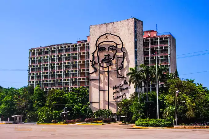 Plaza de La Revolución (Spanish for Revolution Square) is a politically charged square stretching to the sea, surrounded by Cuban government buildings. With its massive portrait of Che Guevara, Castro's revolutionary slogans, and a sculpture of José Martí, the square has become a symbol of the Cuban spirit. It has witnessed many historical moments, and Cuban leaders often give public speeches there. When Fidel Castro passed away in 2016, people from all over Cuba gathered in the square to bid farewell to their leader.