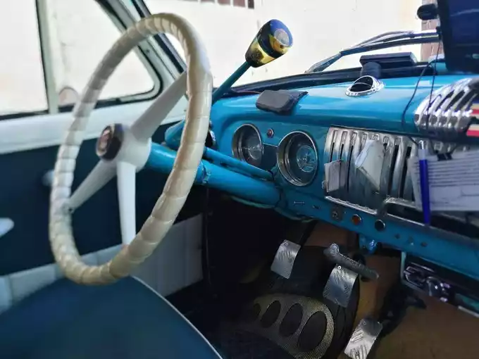 Colorful classic cars drive through colorful streets, and even the children's smiles are colorful.