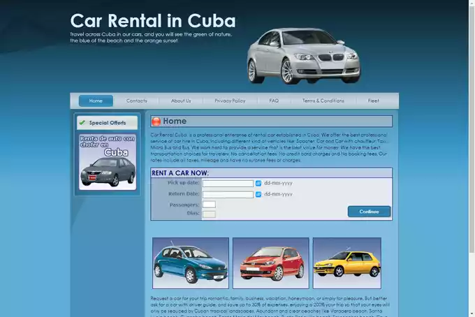 Most well-known international car rental platforms don't offer rentals in Cuba. The most reliable and well-known service in Cuba is Car Rental Cuba (http://www.carrental-cuba.com).
