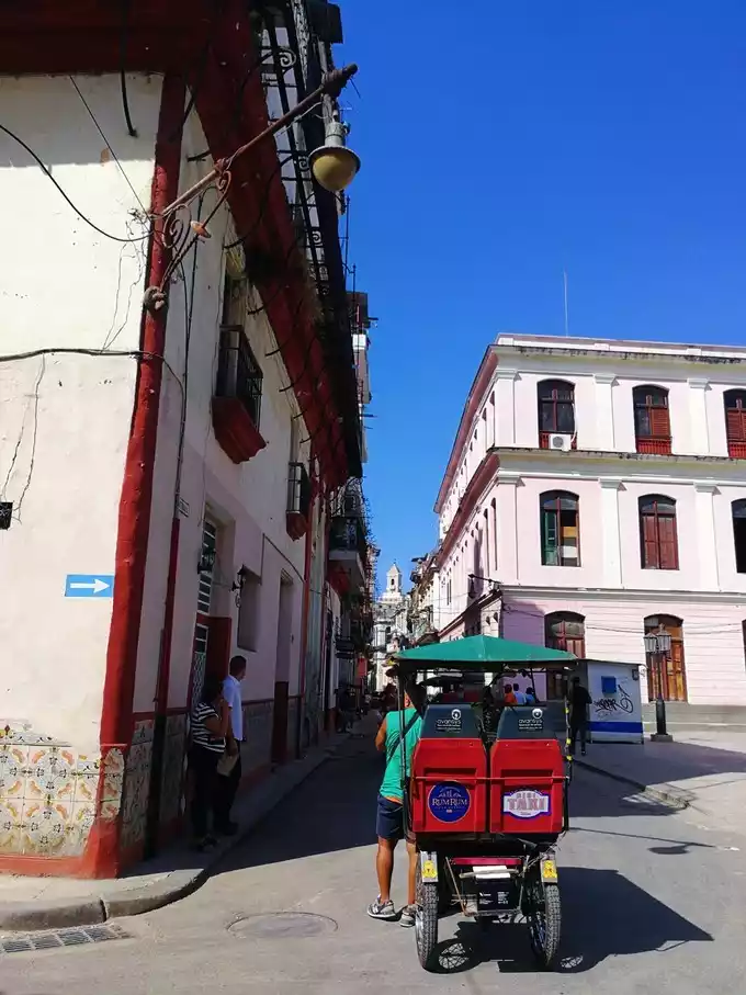 Cyclists: There are also three-wheeled rickshaws, and the prices are unpredictable, so bargaining is essential. For example, I took a rickshaw from Chinatown to Havana's Old Town, a roughly 15-minute journey, and the driver quoted 2 cuc, which I thought was a good deal, so I didn't bargain. However, from Old Havana to the Esplanade, a 10-minute trip, a rickshaw offered 10 cuc, which I felt was a rip-off, so I bargained down to 5 cuc.