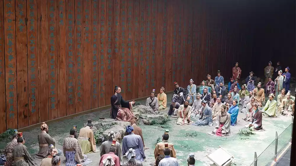 Located at 15 Chunqiu Road in Qufu's Nanxin District, the Confucius Six Arts City, like its name, showcases Confucius' six arts: ritual, music, archery, charioteering, calligraphy, and mathematics. While its decor reflects a period charm, the building is a truly modern creation, utilizing high-tech technologies like sound, light, and electricity to create lighting effects not possible in ancient buildings.