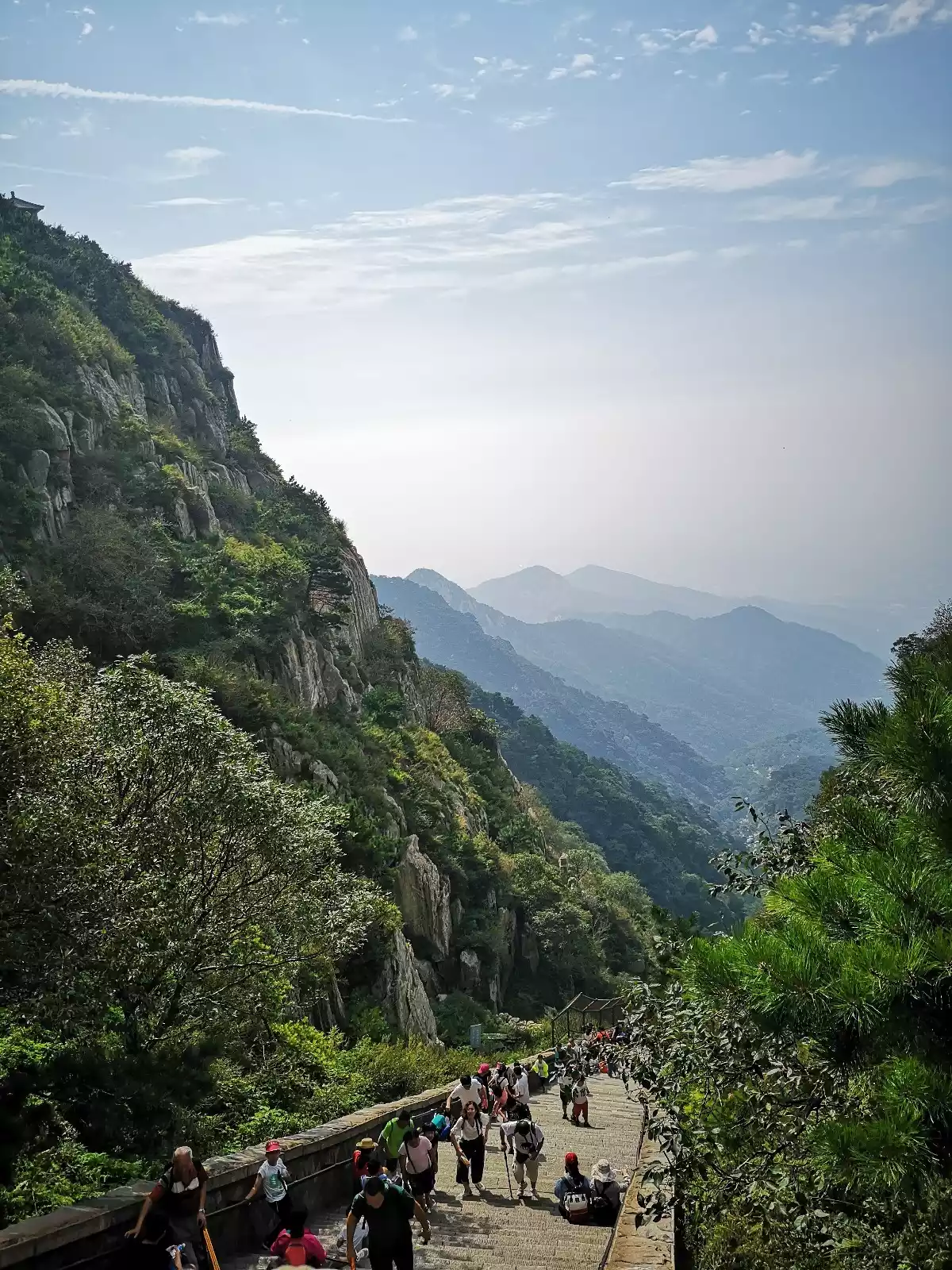 There are two starting points for climbing Mount Tai from Tai'an: Hongmen, the hiking trailhead, is the most classic and popular starting point. From here, you can climb all the way to Zhongtianmen, traverse the Eighteen Bends, and finally ascend to Nantianmen and reach Yuhuangding. If you're not in good physical condition, you can take the scenic bus from Tianwai Village to Zhongtianmen, then take the cable car or hike halfway up the mountain from Zhongtianmen.