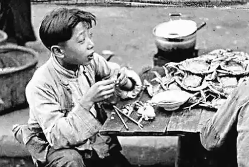 This photo was actually taken by American photographer Walter Alufat and is from his album "Shanghai 1945." Therefore, the time period of the photo is correct. While we don't know the price of crab back then, we can roughly estimate from newspapers that one hairy crab could be exchanged for five kilograms of rice. A rough calculation suggests that the hairy crabs in the photo, converted into rice, would have fed a family of five for two months. While the true situation is unknown due to the passage of time, it's safe to say that hairy crabs were still unaffordable for poor families at the time.