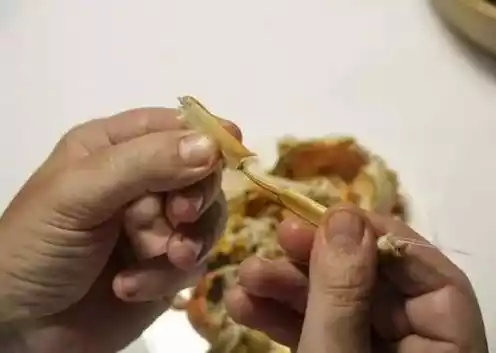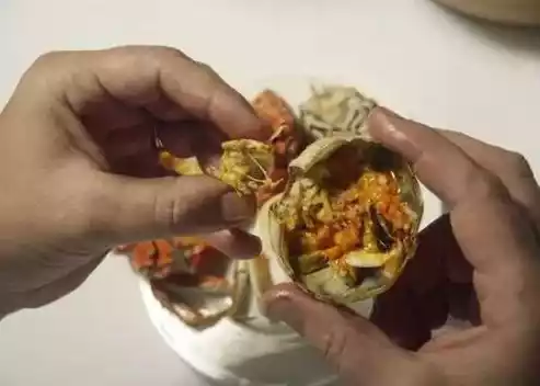 Open the crab shell and peel off the crab intestines, which are the dirtiest part and cannot be eaten. Then eat the crab shell first, and use a spoon to dig out the crab stomach under the crab mouth. This part cannot be eaten and should be thrown away. Use a spoon to dig out the rest and eat it all.