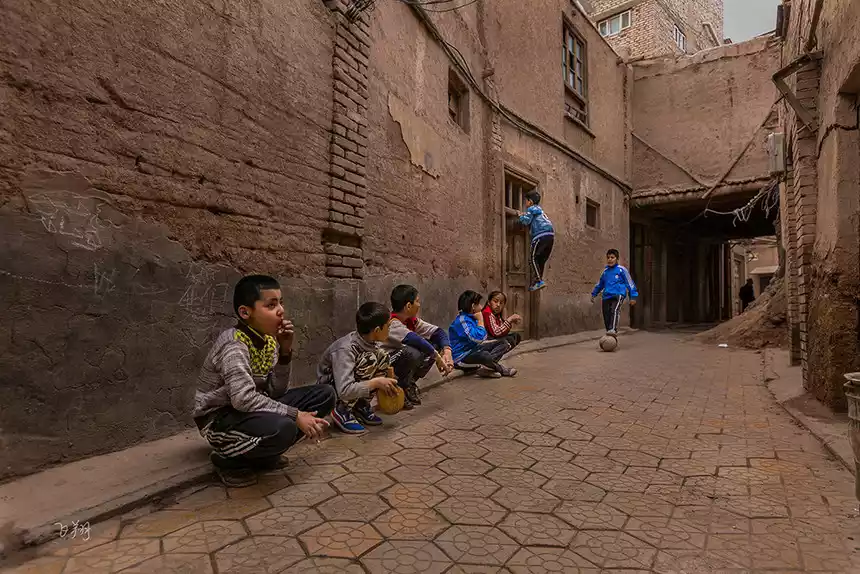 The Uyghurs have lived here for generations, their houses clinging to the cliffs. As a family's population grows, they add a floor to their ancestors' houses, and so on, generation after generation, they build one house after another, layer upon layer. Most of these houses are made of earth, but there are also many newly built brick houses. Between these haphazardly built buildings, there are more than 50 alleys that crisscross, twist, and turn, and rise and fall. Without a local guide, outsiders will definitely get lost.