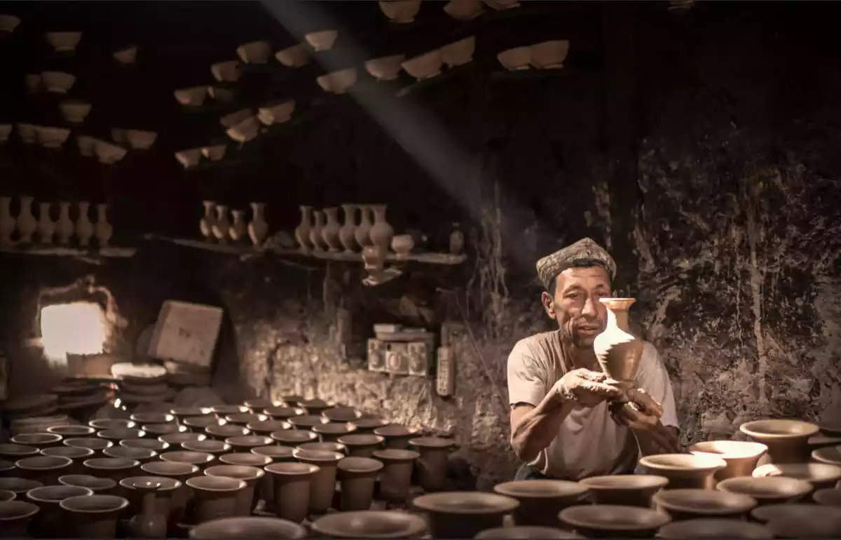Traditional Islamic-style buildings are the soul of Kashgar's Old City. Strolling through its alleys, you'll see colorful wooden doors, carved balconies, and playful Uyghur children—every snap is a postcard-worthy moment. Turn a few corners to Kazanqiyabeixi Lane, where iron pot makers sit before their shops, hammering away at their iron woks. Old carpenters, wearing reading glasses, carve naan sticks. To the east, Flower Hat Street is a dazzling display of goods. When you're tired, stop by a century-old teahouse on Wustangboyi Road for a pot of fruit tea and listen to a Uyghur man sing and play. After dark, the night market opens, offering grilled eggs, steamed buns, yogurt shaved ice, and other commonplace dishes transformed into something special. Kashgar's Old City isn't so much about sightseeing as it is about discovering life.