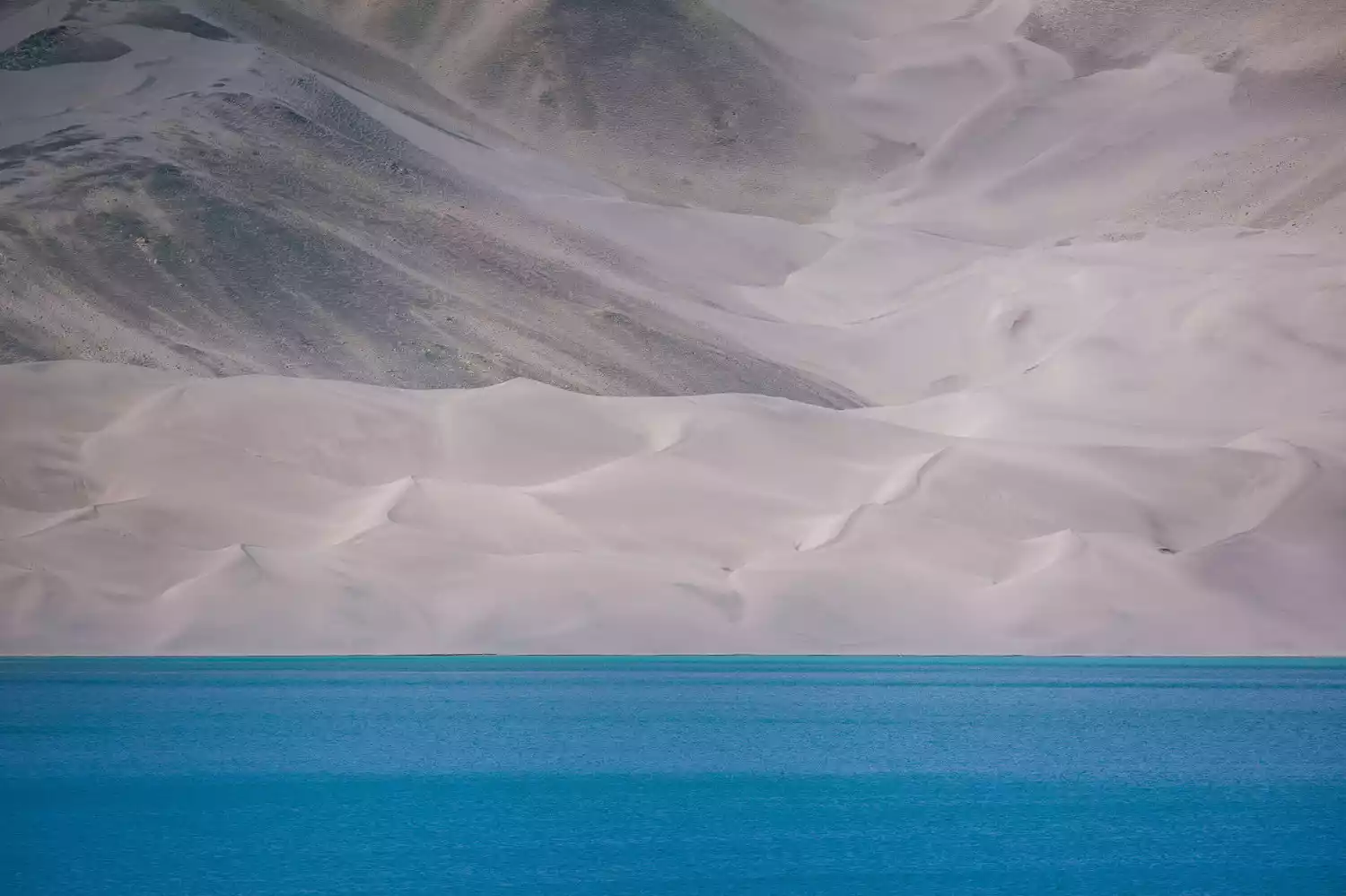 Along the China-Pakistan Friendship Highway, visitors can admire the natural beauty of the Pamir Plateau. Baisha Lake is often the first stop on the plateau. Baisha Lake is a large plateau reservoir, boasting clear waters that change color in different seasons, resembling a piece of jade. Strong winds from the plateau have blown sand here, forming a series of silvery-white sand dunes across the lake.