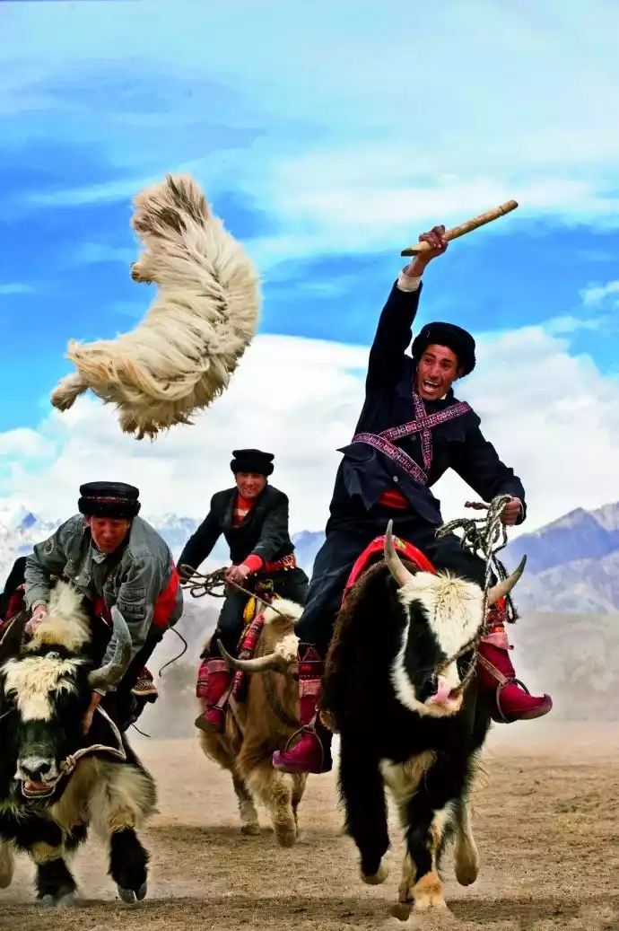 Sheep-stealing is a highly valued traditional sport practiced by many grassland ethnic groups. Typically, two teams on horseback compete for a sheep, with the winner being the one who lands it at a fixed point. However, yak-stealing is a tradition unique to the Tajik people. Deep in the Pamir Plateau, the Tajiks have a long history of yak farming. The yaks' adorable and simple appearance adds a touch of fun to this custom.
