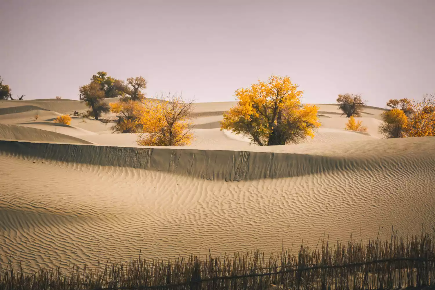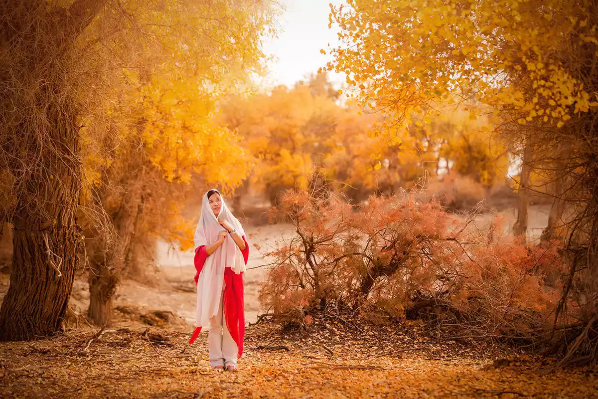 Populus euphratica, meaning "the most beautiful tree" in Uyghur, is also known as the "desert hero tree" due to its tenacious vitality and its amazing ability to withstand drought, windblown sand, and salinity.