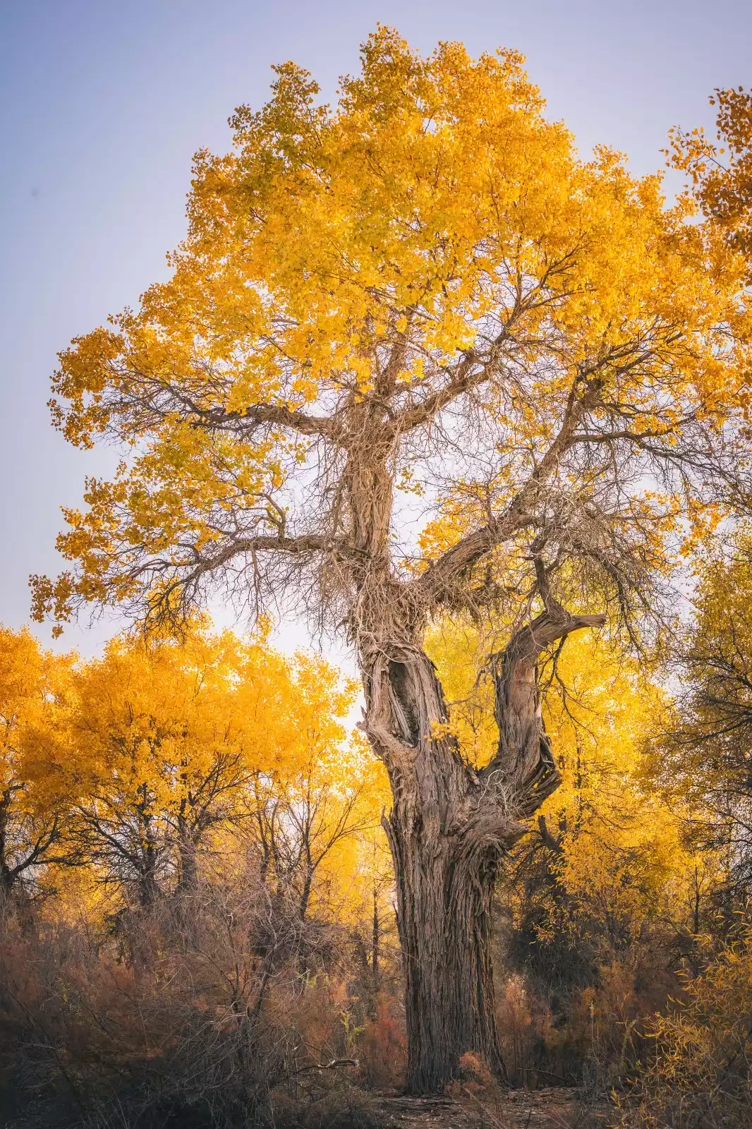 Populus euphratica is an ancient tree species from the Tertiary Period. Its long growing season, influenced by wind, sand, and drought, has given many trees strange and eerie shapes. They are said to "live for three thousand years without dying, stand for three thousand years after death, and remain immortal for three thousand years after falling." The vast majority of the world's poplars grow in China, and over 90% of China's poplar forests are found in the Tarim River Basin in Xinjiang.