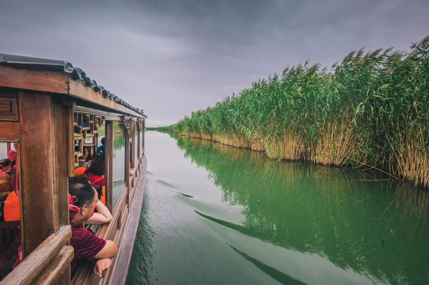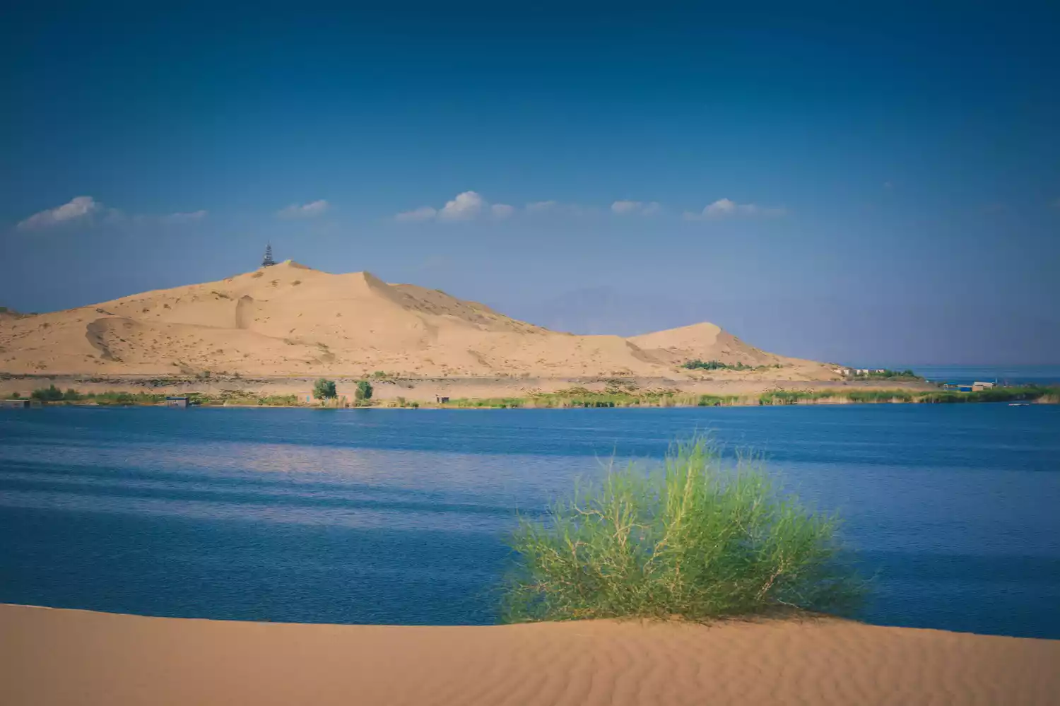 Bosten Lake, meaning "oasis" in Uyghur, is China's largest inland freshwater lake. Tourism development began in the late 1980s, and the lake has since become a national key scenic spot and a 5A-level tourist attraction. The scenic area along the lake can be divided into four areas: Golden and Silver Beaches, Dahekou and Luoxia Bay, Ahongkou and Lotus Lake, the Pumping Station, and Bailuzhou. China-TravelNote features Ahongkou (now known as Lianhai Scenic Area) to explore this wetland oasis nestled in the Gobi Desert of southern Xinjiang.