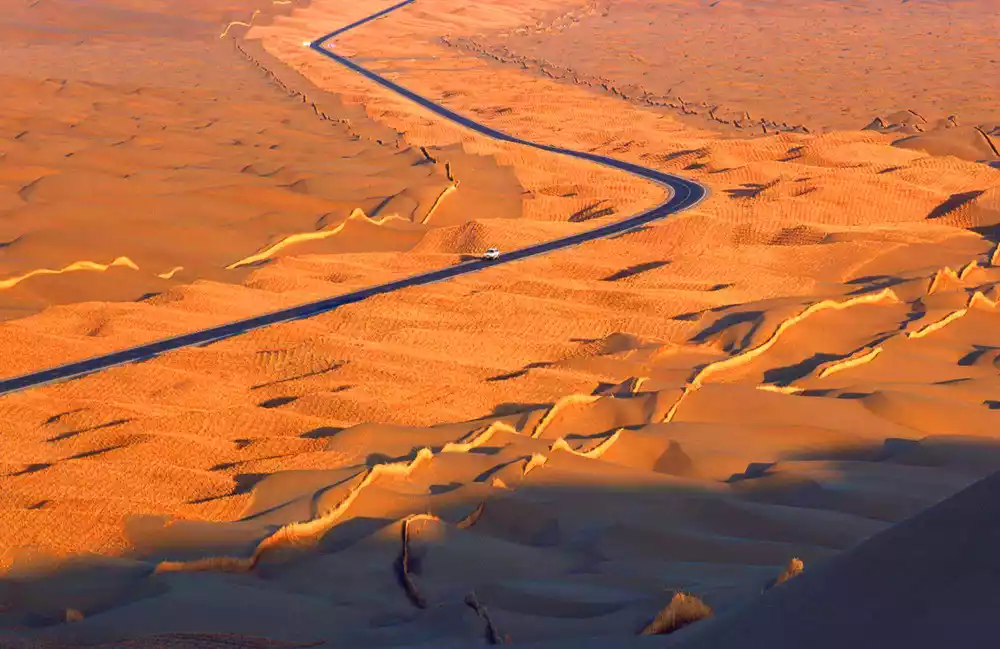 The first highway in the Taklamakan Desert is the Luntai-Minfeng Desert Highway (completed in 1995), and the second is the Aral-Hotan Desert Highway (completed in 2007). The China-TravelNote Southern Xinjiang Autumn Itinerary will take you across the second desert highway, starting from Aral, an oasis city at the southern foot of the Tianshan Mountains in the north, and ending in Hotan, at the northern edge of the Kunlun Mountains in the south. Flanked by rolling sand dunes and tenacious poplar trees, the highway offers stops along the way to experience the charm of the vast desert.
