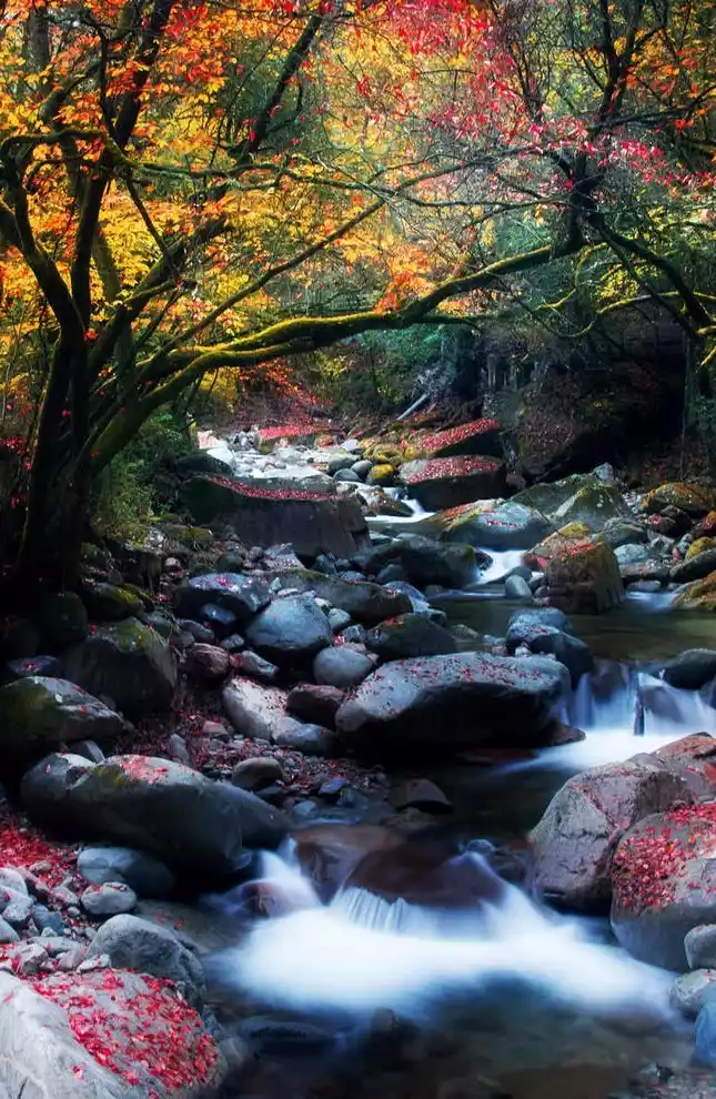 Shennongjia is located in western Hubei Province, bordering Chongqing's Wushan Mountains to the west and the Bashan Mountains to the south. It is the only administrative region in China named "Forest Area." It is also one of the most underdeveloped primeval forest scenic areas. When autumn arrives, Shennongjia's stunning autumn colors begin to bloom. The rolling hills resemble a canvas, and the trees that blanket the landscape are like a paintbox accidentally overturned by nature. The evergreen vegetation blends with the vibrant colors of maples, tulip trees, sycamores, crabapples, walnuts, and chestnuts. The vibrant colors are truly breathtaking. This beauty can only be truly appreciated when you visit and see it for yourself.