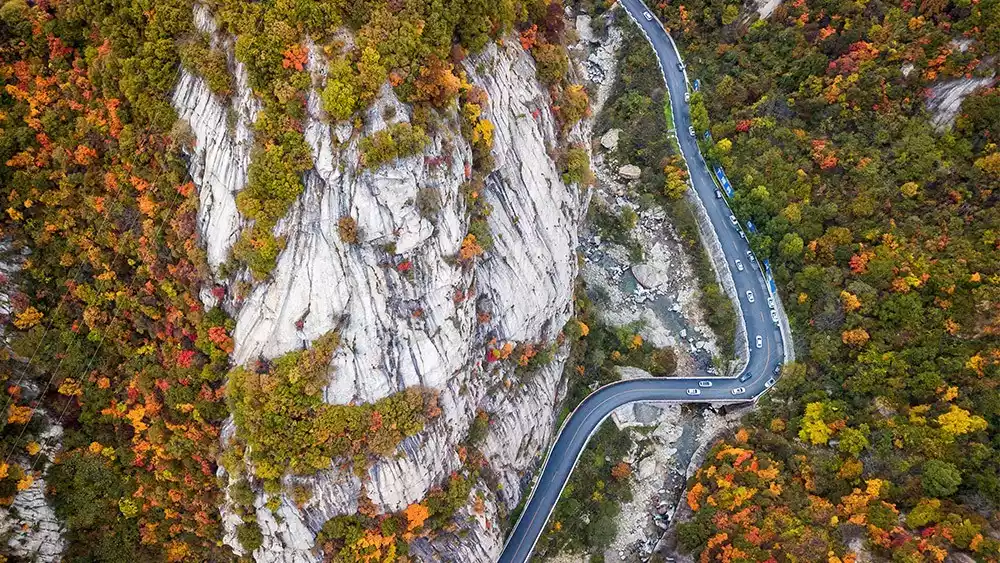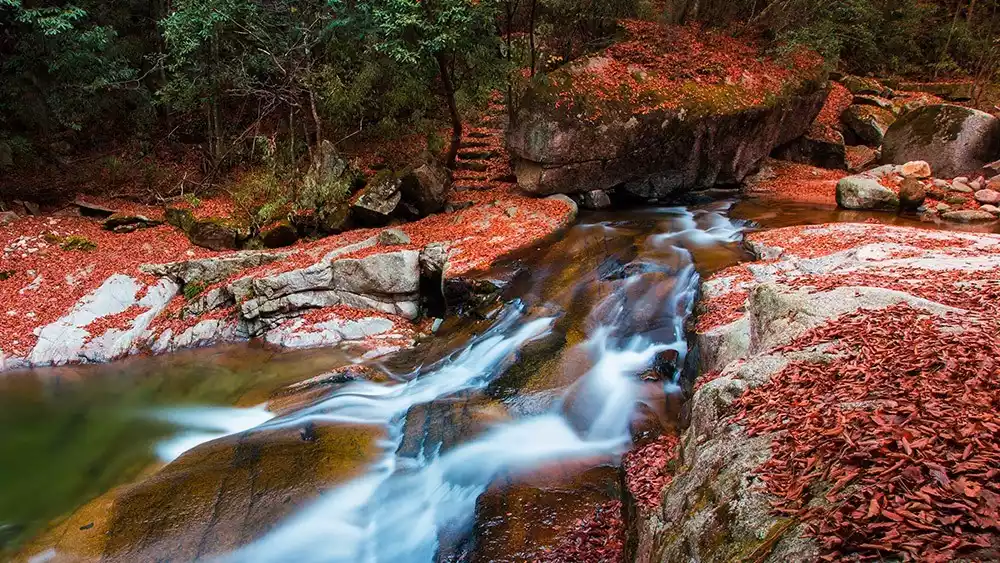 Generally, red leaves are mainly red, but the colors of the red leaves in Guangwu Mountain change in steps, mainly blue, green, yellow, orange and red, which is incomparable to other red leaf viewing areas.