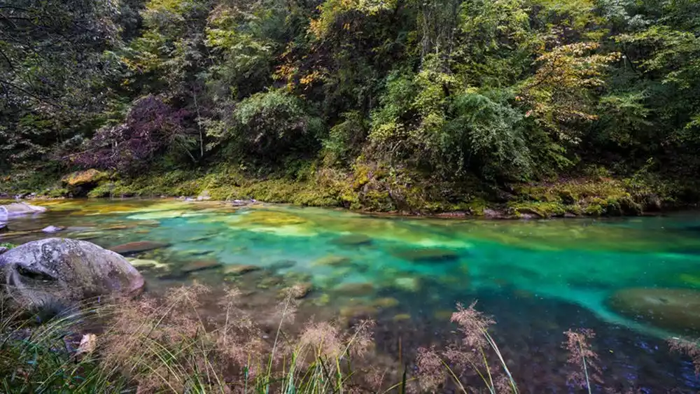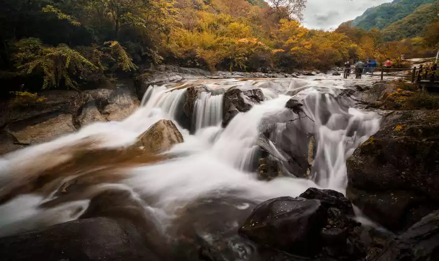 The Qinling Mountains' crimson leaves are best seen in Dajiangou, known as the "Little Jiuzhaigou." With virtually no tourists, the scenic area retains its pristine natural beauty. We'll follow the plank roads and streams in search of the most beautiful, hidden gems of crimson leaves. With a bit of luck, you might even catch a glimpse of the national treasure, the giant panda. Please don't disturb them.