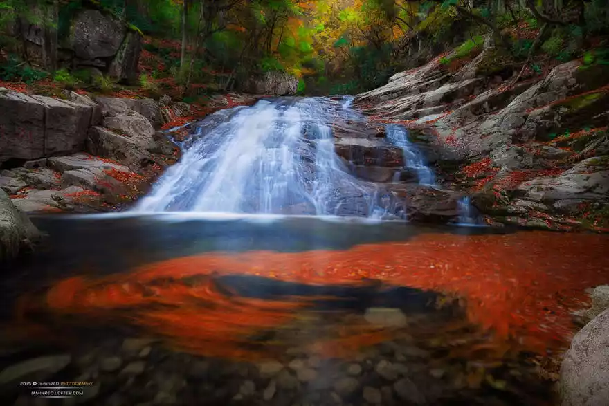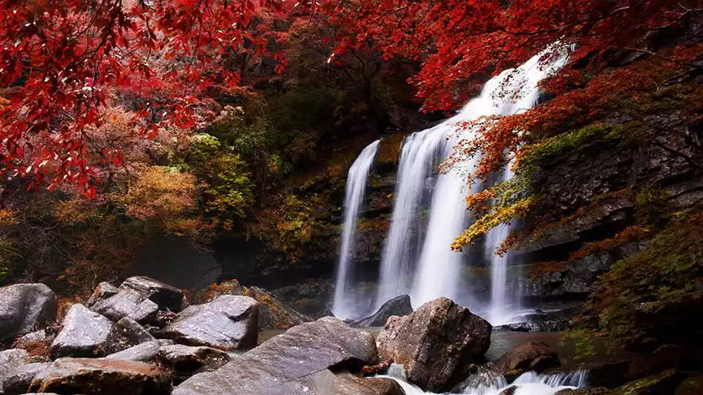 Known as the "Jiuzhaigou of Northern Sichuan," the 3.5-kilometer-long Pearl Valley is dotted with 18 waterfalls and pools, framed by crimson leaves that gradually fade from light to deep red. The melody of "mountains and flowing water" playing here is simply breathtakingly beautiful.