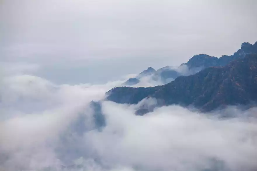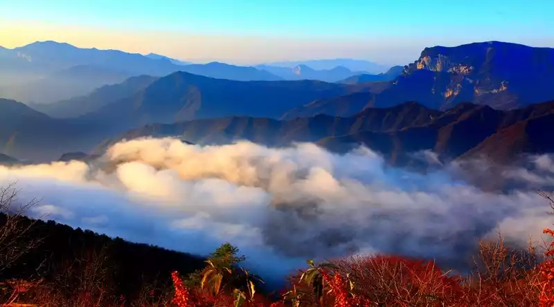 The terrain here is complex, with overlapping peaks, beautiful peaks and forests, and deep caves. It is home to numerous mountain springs, swirling clouds and mist, and vast forests, offering numerous scenic spots. It is known as the best mountain for red leaves in China.