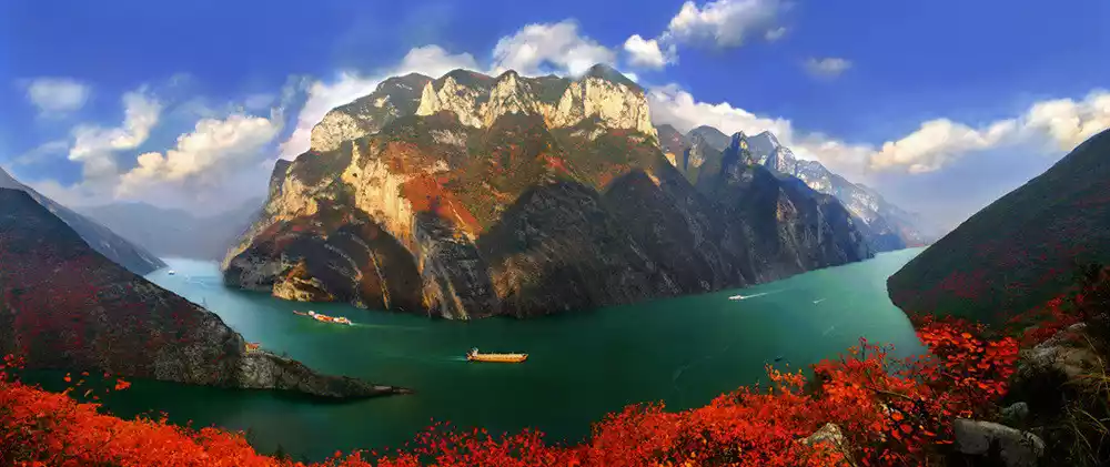 The Three Gorges Scenic Area stretches from Baidicheng in Fengjie in the west to Yichang in the east. Stunning peaks and steep cliffs stand out on both sides of the gorge. From west to east, they are Qutang Gorge, Wu Gorge, and Xiling Gorge. Each of these three gorges offers unique and distinctive scenery. In autumn, the color red dominates the Three Gorges. In autumn, the entire Yangtze River basin is blanketed in crimson foliage. Entering the mountains along the Three Gorges is like stepping into a magnificent painting of crimson leaves. The crimson leaves in the Three Gorges arrive last, but they also bloom the latest and last the longest. At the height of autumn, the banks of the gorge are ablaze with crimson, creating a spectacular spectacle.