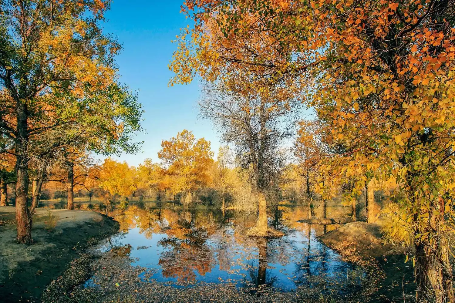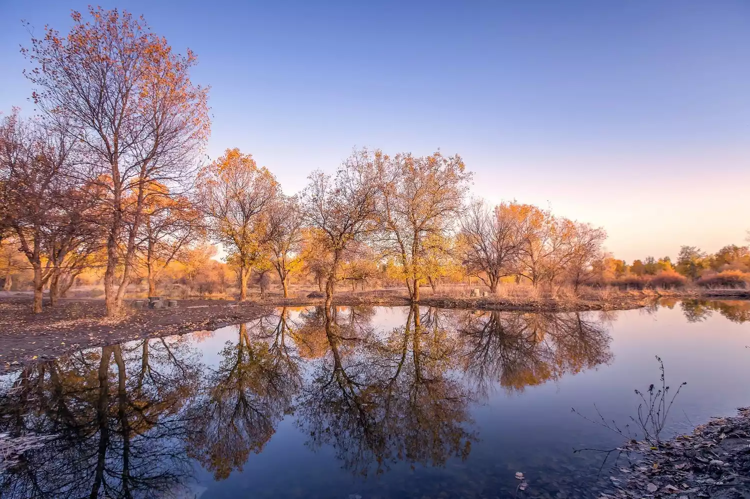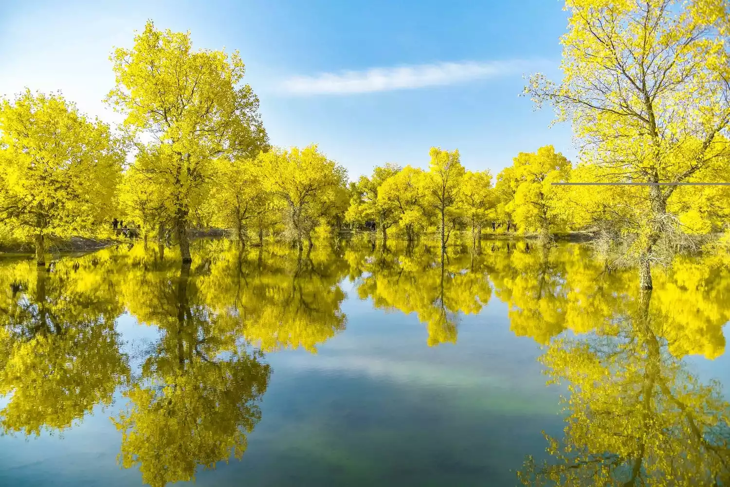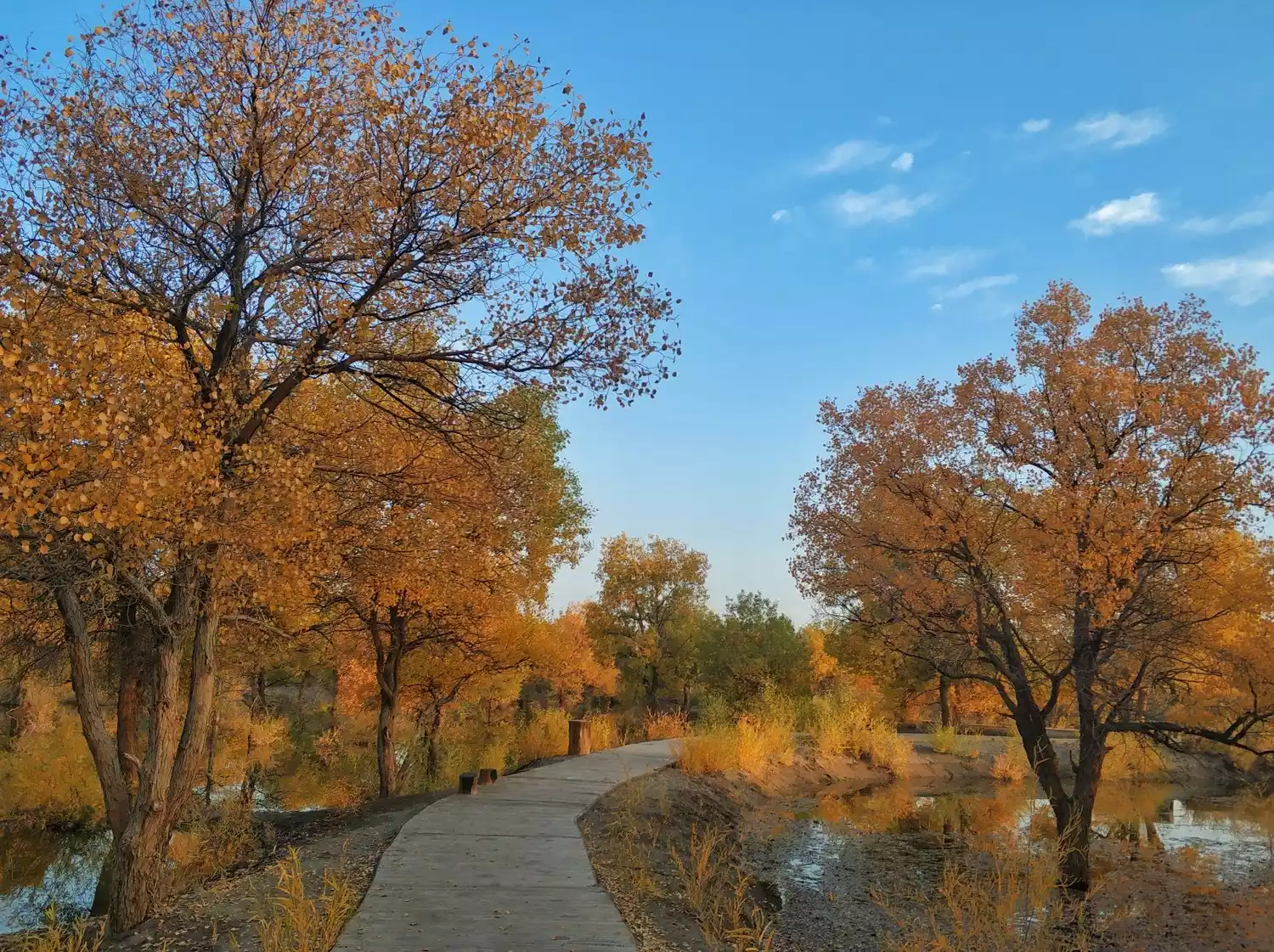 There are many niche autumn colors, but I particularly love the Jinta Populus euphratica forest. In the vast land of the northwest, the sky is high and the clouds are light. I come to the Jinbo Lake to watch the autumn leaves rising and falling. The poplar trees by the water in the evening light are so beautiful.