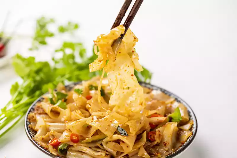 Jinta rice noodle skin is purely handmade. Its main nutrients are carbohydrates, and it also contains a small amount of protein, vitamins and minerals. It has the characteristics of being soft, tender and chewy.
