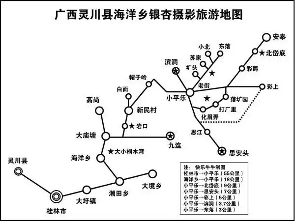 Although Haiyang Township is outside Guangdong Province, it's still very convenient to travel from Guangzhou to Guilin by high-speed rail in just three hours. Haiyang Township, known as China's Ginkgo Town, is a small village home to one million ginkgo trees, typically 30-50 years old, with an average canopy height of 13 meters and a trunk diameter of 0.5 meters. Over 500,000 of these trees are very old, the oldest of which is over 500 years old, and over 17,000 are over a century old.