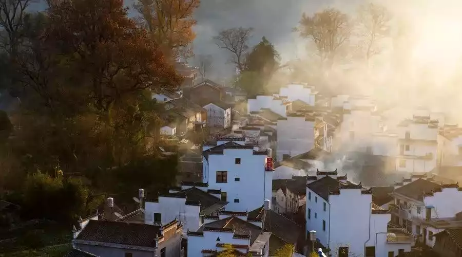 This place in the golden autumn still has a unique charm worth appreciating. When the morning mist gradually dissipates in the warm morning light, and when the swaying red maple leaves are silent against the gray-tiled and white-walled ancient houses, this magnificent beauty that can only be seen once a year is truly fascinating.